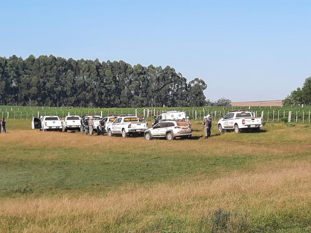 A BM procura cerca de cem cabeças de gado que podem estar na propriedade que tem 346,7 hectares. Cerca de 15 viaturas, duas motocicletas e cerca de 40 policiais trabalham na ação.