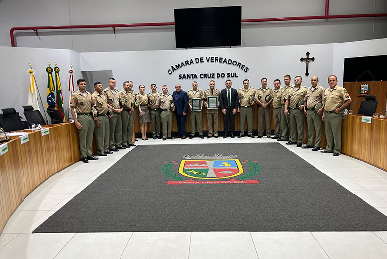 Uma sessão solene foi realizada na noite dessa terça-feira, 6, em homenagem à Brigada Militar pelos 185 anos da entidade, bem como pela passagem dos 20 anos do 23º Batalhão de Polícia Militar de Santa Cruz do Sul. A proposição foi do vereador Francisco Carlos Smidt, subscrita por Rodrigo Rabuske e Daiton Mergen.