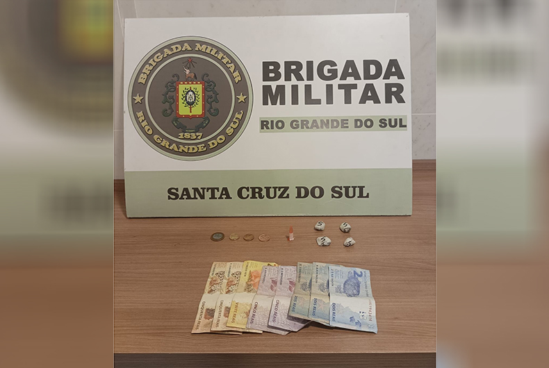 Ao acompanhar o veículo, a guarnição verificou que um homem desembarcou em uma parada de ônibus com as mesmas características referidas. Ele foi abordado e identificado. Durante revista pessoal, foi constatado que o suspeito, de 24 anos, guardava, no forro do casaco, quatro porções de maconha (4,8 gramas), uma porção de cocaína (0,6 gramas) e R$ 137,25.