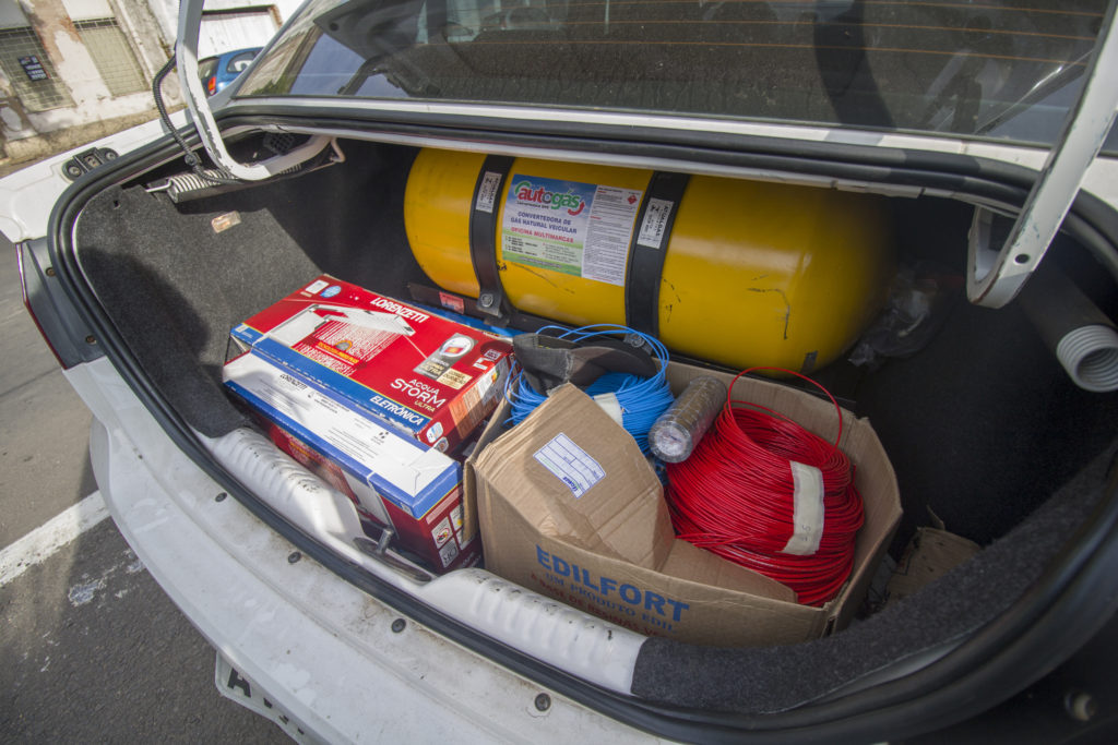 O Voyage branco que ele dirigia tem placas da cidade catarinense e estava com o licenciamento vencido. No porta-malas, os policiais encontraram chuveiros de luxo em caixas e grande quantidade de fios elétricos, enrolados. Os itens, avaliados em cerca de R$ 5 mil, haviam sido apanhados pelo criminoso durante a manhã de terça, em uma loja de Sobradinho.