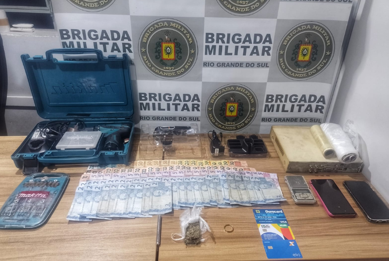 Dentro do imóvel, os policiais localizaram, ainda, dinheiro e apetrechos utilizados para o comércio de ilícitos. Outros dois homens também estavam no recinto. Um deles estava com uma parafusadeira, semelhante a uma furtada no dia anterior, no Bairro Macedo. O suspeito, de 31 anos, informou que havia comprado de outra pessoa por R$ 35,00. Por isso, foi preso por receptação.