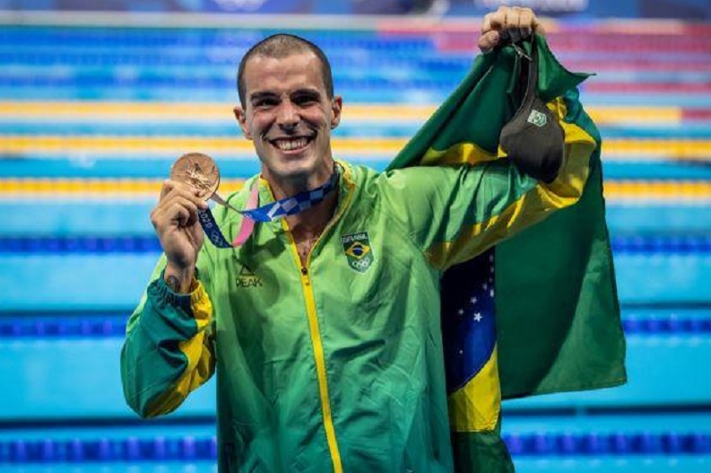 Foi a segunda medalha do Brasil nos Jogos de Tóquio. Antes, Fernando Scheffer faturou o bronze nos 200m livre.