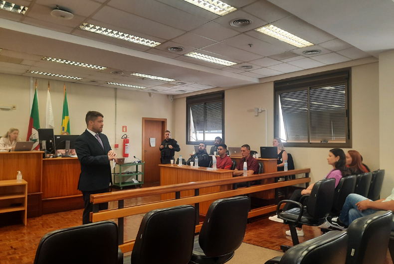 A sessão dessa quinta iniciou-se às 9h30 e foi presidida pela juíza Márcia Inês Doebber Wrasse. Seis homens e uma mulher formaram o conselho de sentença. Uma grande quantidade de pessoas, entre amigos e parentes da vítima e dos dois réus, acompanhou o julgamento no plenário do Fórum. A quantidade de testemunhas que falaram na sessão também chamou a atenção.