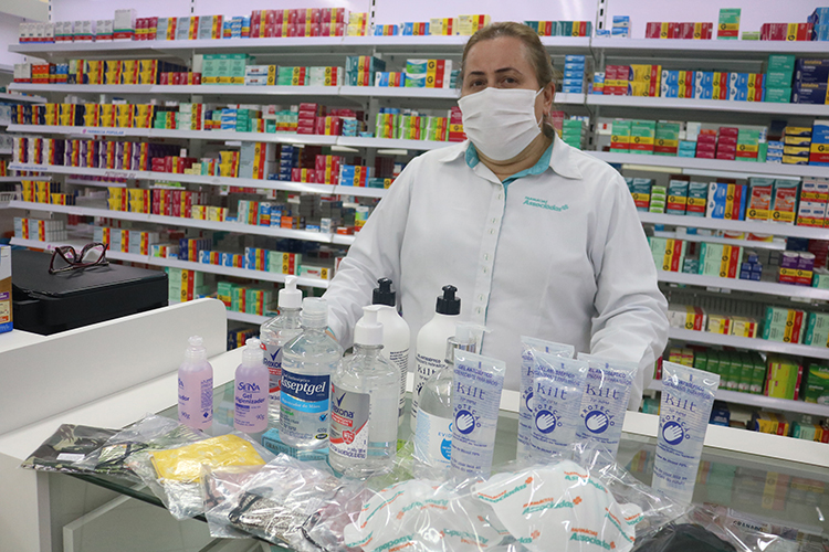 A gerente da Farmácia Nova, Telma Manzke, explica que em março, quando a disseminação do novo coronavírus foi declarada como pandêmica, de cada dez clientes que entravam na loja, nove queriam álcool em gel. “Chegou a ter lista de espera. Faltou produto e princípio ativo para fabricar, foi terrível”, recorda. Hoje tem álcool em gel de todos os formatos, marcas, cores e aromas. “Alguns têm perfume, são de marcas famosas de outros produtos. Virou um item obrigatório de farmácia”, diz a gerente.
