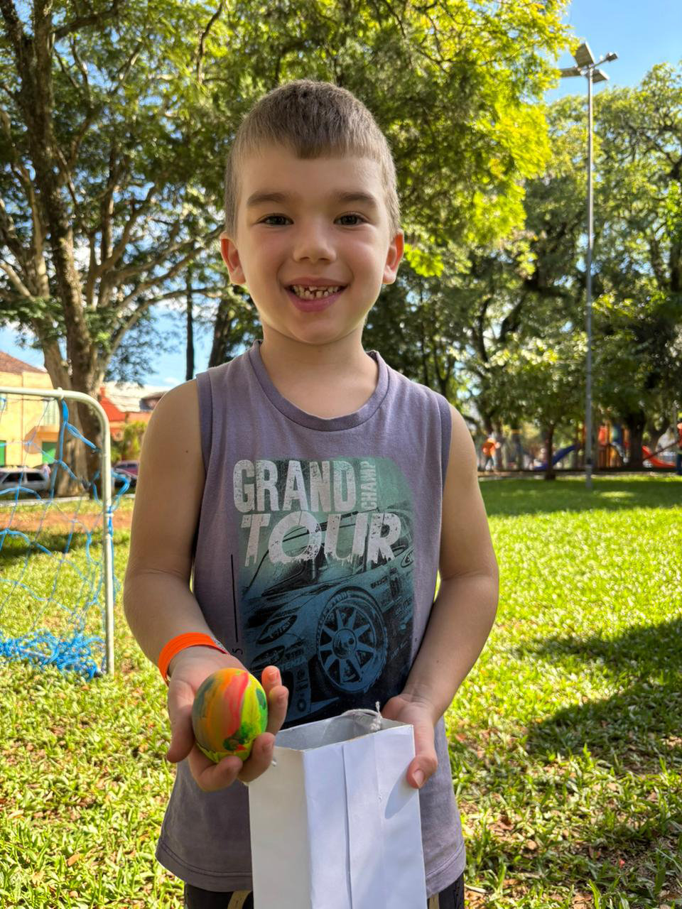 Entre os participantes estavam Isadora Gabriele dos Santos e João Parcianello, ambos de 5 anos, da Emei Margarida Aurora. A dupla, junto com os demais colegas da turma, encontrou vários ovos. “Foi legal”, comentou João.