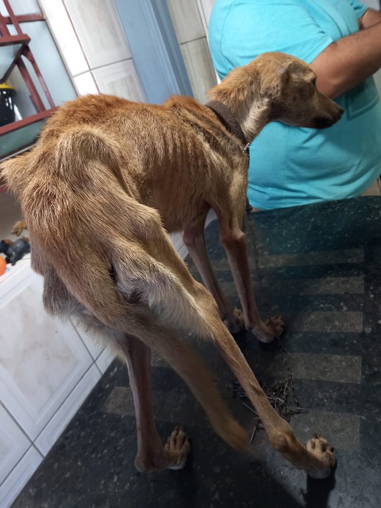 O cão estava desnutrido e os maus-tratos eram evidentes. Ele foi conduzido para atendimento veterinário e depois para um abrigo, em Santa Cruz do Sul.