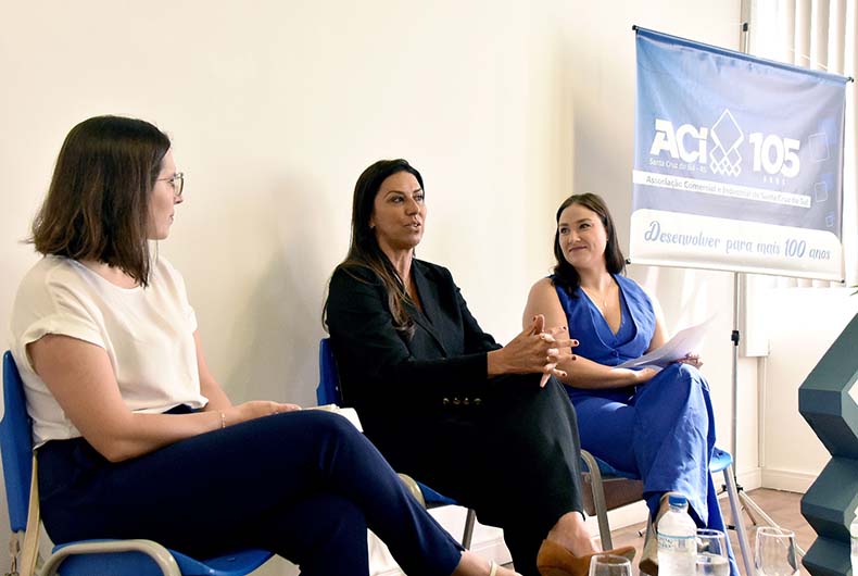 A Associação Comercial e Industrial (ACI) de Santa Cruz encerrou o calendário de eventos de 2024 com uma edição em novo formato do Café Empresarial, na manhã dessa quarta-feira, 18. Realizado no auditório da entidade, o tradicional evento de networking agora segue a dinâmica de uma roda de conversas. A executiva em ESG e Comunicação, Amanda Costa Cosenza, foi a convidada do encontro que contou a mediação da vice-presidente da Associação dos Jovens Empreendedores de Santa Cruz (Ajesc), Silvana Silveira, e da diretora do Núcleo de Mulheres Empreendedoras da ACI, Jessica Teloeken.