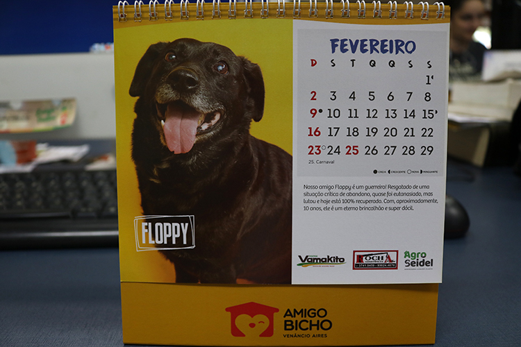 A ONG Amigo Bicho existe desde 2010. Como o município de Venâncio não conta com canil, os 15 voluntários oferecem lares temporários, disponibilizando espaços em suas casas para abrigar animais em situação de riscos. “Infelizmente, é um número bem pequeno comparado ao tanto de animais que temos sob nossa tutela e o tanto de casos que surgem diariamente. No momento, estamos resgatando apenas filhotes, mães, prenhes, idosos, machucados e doentes”, explica a voluntária Débora Ribeiro. Além dos calendários, a entidade também organiza brechós e feiras de adoção durante o ano. A próxima deve ocorrer no mês que vem.