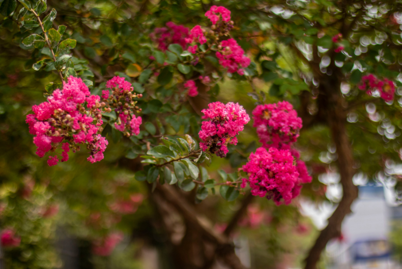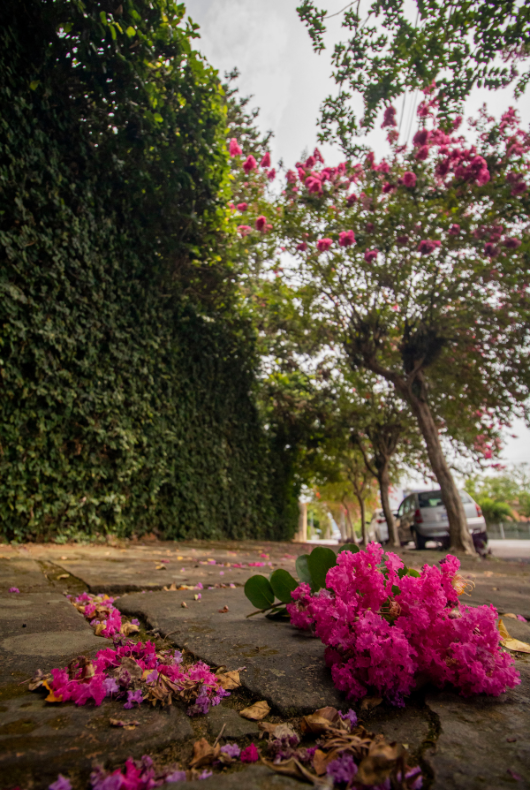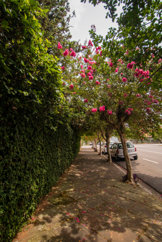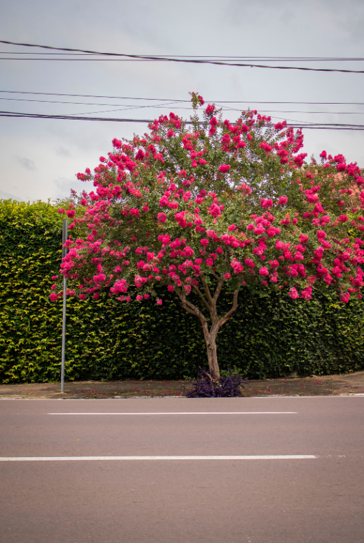O rosa chama mais a atenção, mas a árvore também pode exibir o branco e o lilás. A extremosa é símbolo de Santa Cruz desde 1972