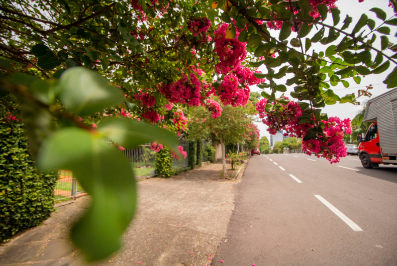 Há algumas semanas, por conta da floração, as árvores da espécie extremosa têm chamado a atenção de quem circula pelas ruas do centro de Santa Cruz do Sul. O colorido se destaca com o rosa, mas ela também pode ser vista em branco e lilás. No entanto, toda essa beleza tem sofrido interferência do clima, em especial pela atuação do fenômeno El Niño.