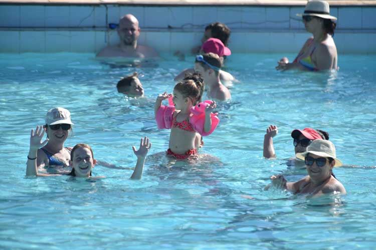 O casal Gládis e Gilson Nicolay foram com o filho, André, de 11 anos para a piscina da Associação Atlética Banco do Brasil (AABB). No local, cerca de 200 pessoas aproveitaram a tarde de sol e temperaturas altas. “Eu trabalho no domingo e na segunda-feira, por isso, optamos por não viajar. Como somos sócios do clube, viemos nos refrescar aqui neste espaço”, conta Gládis. Segundo ela, a prática de ir para a piscina é uma rotina de verão da família santa-cruzense.