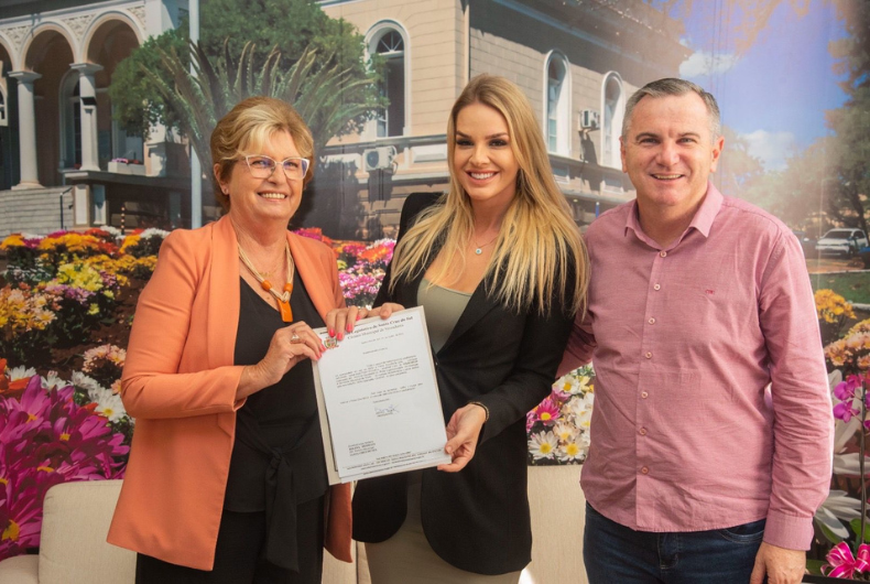 A prefeita Helena Hermany e o vice-prefeito e secretário municipal de Saúde Elstor Desbessell receberam a chefe do Legislativo para a entrega do documento.