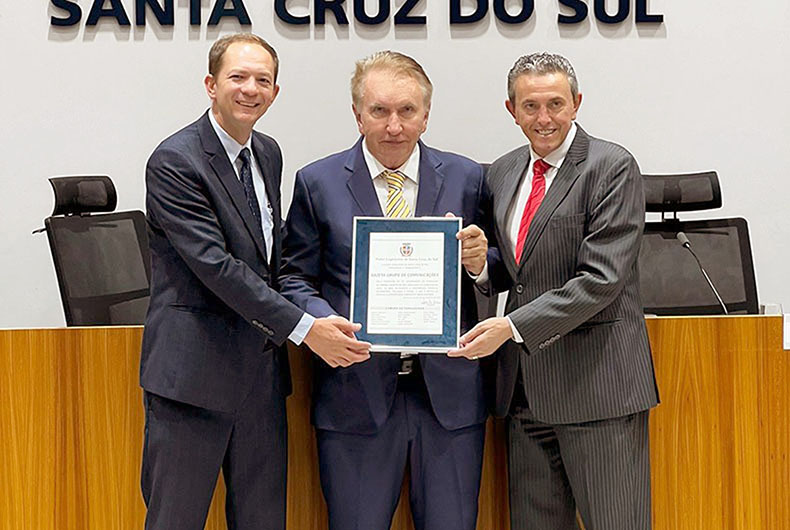 A Câmara de Vereadores de Santa Cruz do Sul realiza nesta segunda-feira, 26, uma sessão solene em homenagem à Gazeta Grupo de Comunicações por ocasião dos 79 anos da Gazeta do Sul, completados exatamente há um mês, em 26 de janeiro. A homenagem foi proposta pelo vereador Raul Fritsch (Republicanos).