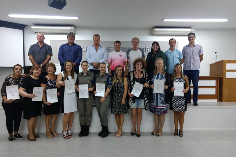 A iniciativa foi da vereadora Maxcemira Trevisan (PDT). Foram homenageadas Anália Hamann Silva, Clauria Ruoso, Daniele Karnopp, Scheila Weber, Mara Maciel, Nelci Siman, Amanda Giovanaz, Tânia Luchese, Lourdes Weide, Denise Cassol, Daiani Puntel, Djuly Raquel Zorzi, Isabel Cristina Selli e Ivanir Maria Nardi.