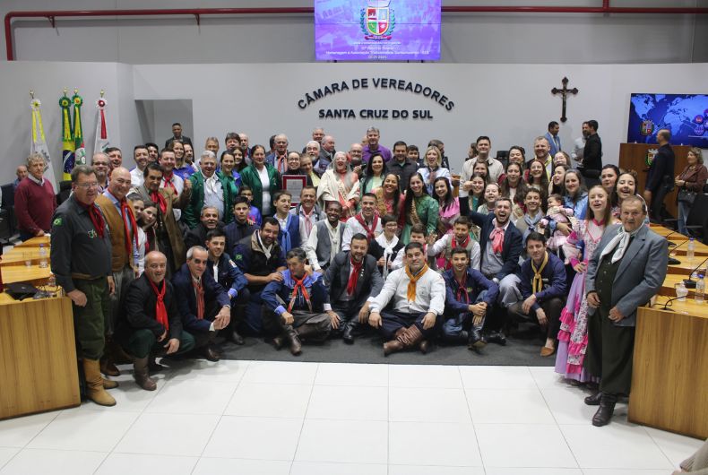 A Câmara de Vereadores de Santa Cruz do Sul realizou sessão solene na noite dessa segunda-feira, 8, para realizar uma homenagem à Associação Tradicionalista Santa-cruzense (ATS), que completou 30 anos. A realização foi proposta pelo então vereador Andrei Barboza, agora secretário de Habitação, mas executada pelo vereador suplente Nairo Lopes (PDT).