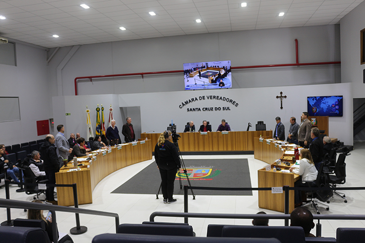 A Câmara de Vereadores de Santa Cruz do Sul realiza sessão ordinária nesta segunda-feira, 19, às 18 horas, com um projeto novo na pauta. Após a sessão ocorre a solene para a entrega do título de Cidadão Honorário ao professor Nestor Raschen, diretor do Colégio Mauá, numa iniciativa do vereador Hildo Ney Caspary (Progressistas).