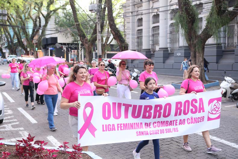 O Outubro Rosa esteve em evidência na Rua Marechal Floriano, no centro de Santa Cruz do Sul, durante a tarde dessa quarta-feira, 30, para reforçar a luta contra o câncer de mama e o câncer do colo do útero. A cor da campanha preencheu o Túnel Verde e chamou a atenção de comerciantes e pedestres, que aplaudiram a iniciativa.