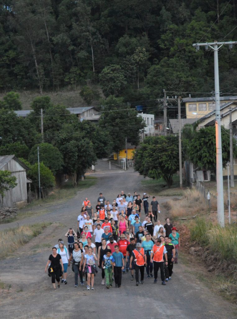 Após percorrer o sentido Centro-Bairro Pinhal, os caminhantes seguiram na direção de Linha Brasileira e ingressaram na mata, onde iluminados por lanternas fizeram o percurso mais íngreme do trajeto. Logo após ingressam em Linha Tupi, direcionando-se sentido cidade. O trajeto foi de pouco mais de 11 quilômetros, com uma duração de aproximadamente duas horas.