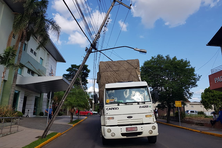 Caminhão atinge cabos telefônicos e danifica poste em Venâncio Aires
