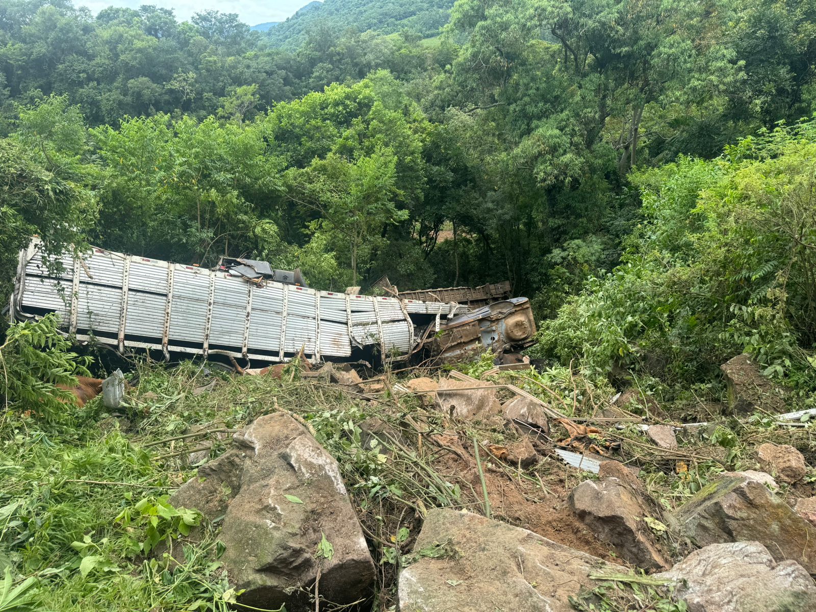 Um caminhão do modelo Romeu e Julieta, que transportava carga viva pela ERS-400, em Candelária, no final da manhã desta terça-feira, 16, acabou tombando na altura do quilômetro 13 da rodovia, no ponto conhecido como Curva dos Knak. O veículo trafegava no sentido Sobradinho-Candelária, quando, por volta das 11h45, o condutor perdeu o controle e saiu da pista, caindo de uma altura de aproximadamente 70 metros. O motorista, de 43 anos, natural de Bagé, foi levado ao Hospital Candelária pelo Serviço de Atendimento Móvel de Urgência (Samu).