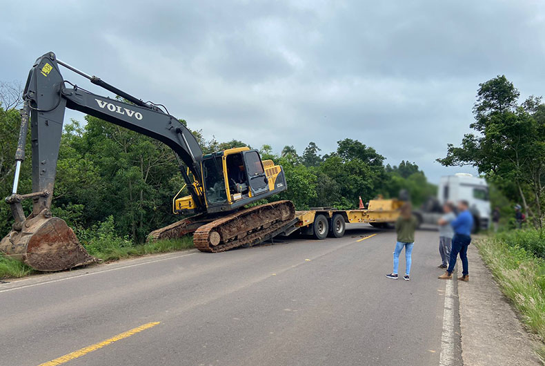 O condutor relatou que estava fazendo uma manobra para ingressar em uma propriedade, quando precisou invadir a pista contrária. Na sequência, um problema mecânico impediu a conclusão da manobra. Em função do incidente, o caminhão, que transportava uma escavadeira, ficou atravessado na pista. Há registro de congestionamento no local.