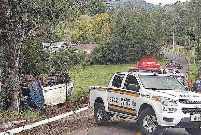 Um acidente de trânsito ocorreu por volta das 11h45 deste sábado, 18, no entroncamento da Rua Barão do Arroio Grande com a Estrada Bruno Pritsch, em Santa Cruz do Sul. Conforme informações da Brigada Militar, o condutor de um caminhão de lixo perdeu o controle da direção devido a problemas nos freios e o veículo capotou.