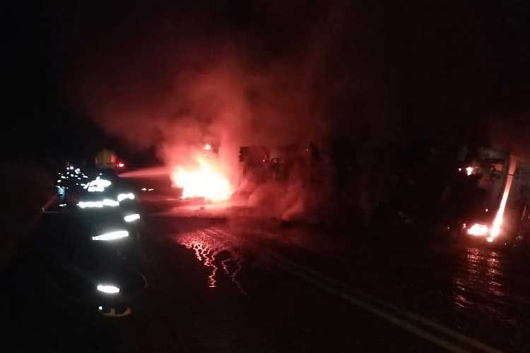 O condutor do caminhão, de 45 anos, teria perdido o controle do veículo, que carregava soja. O caminhão tombou em uma curva e pegou fogo. O Corpo de Bombeiros combateu as chamas durante uma hora de trabalho, utilizando cerca de 5 mil litros de água. Neste período, o trânsito foi bloqueado no local.