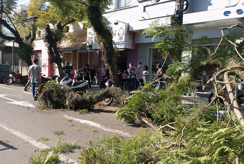 Caminhão derruba árvores e danifica motos no Centro de Santa Cruz