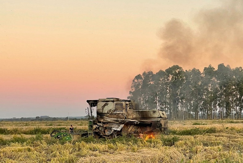 Um caso inusitado aconteceu em Candelária nesta terça-feira, 16. O Corpo de Bombeiros Voluntários do município foi acionado por volta das 16h30 para combater as chamas que atingiam uma colheitadeira, na localidade de Rebentona, no interior. Os profissionais, no entanto, não conseguiram chegar até o equipamento agrícola: o caminhão atolou no caminho.