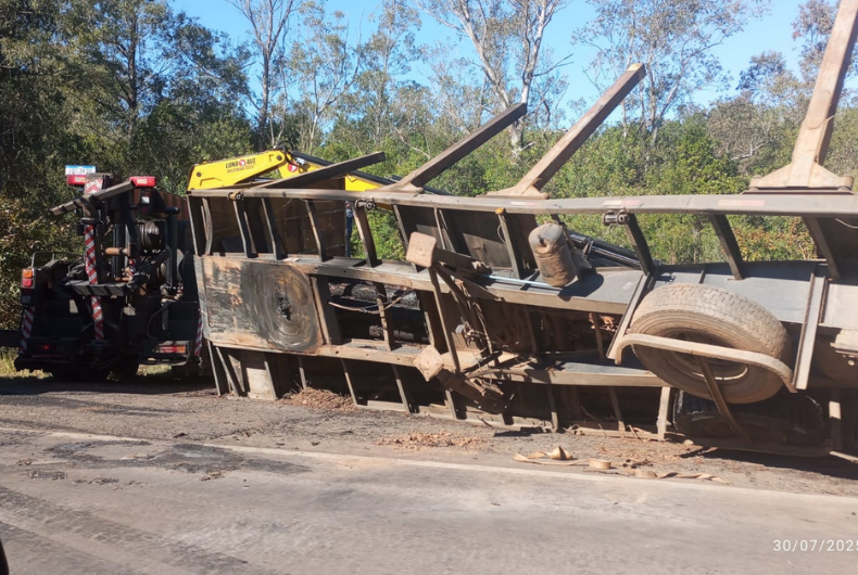 Um caminhão Volvo/Fh 520 se envolveu em um acidente de trânsito na madrugada desta quarta-feira, 30, na BR-471, em Rio Pardo. Por volta das 4h15, o veículo acabou saindo da pista na altura do quilômetro 178. O condutor saiu ileso, contudo a carga acabou transbordando. O veículo será removido pela Polícia Rodoviária Federal ao longo da tarde. O trânsito segue fluindo em meia pista no local e exige atenção dos condutores.