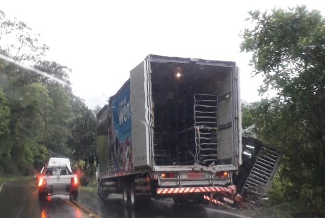 Segundo relatos de um leitor do Portal Gaz, o veículo ficou preso em um guard rail instalado no local, o que impediu que o caminhão caísse no barranco. O equipamento, contudo, está danificado. Ninguém ficou ferido.