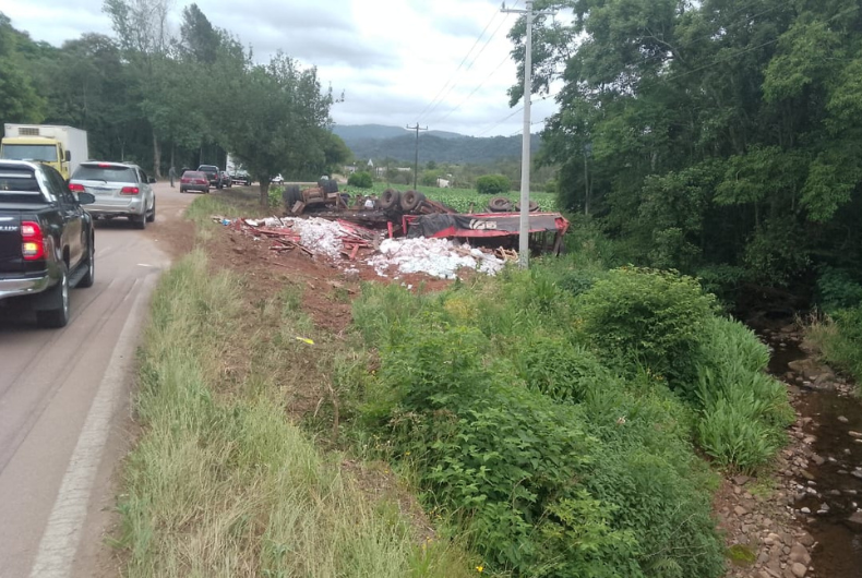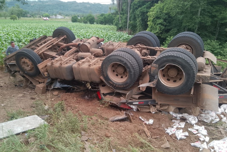 O veículo tinha placas do município e tracionava dois semirreboques, transportando uma carga de sal. Segundo o Comando Rodoviário da Brigada Militar, a carreta seguia no sentido Santa Cruz – Monte Alverne quando acabou perdendo o controle da direção em uma curva, saindo da pista e tombando próximo a uma plantação de tabaco, nas margens da rodovia.