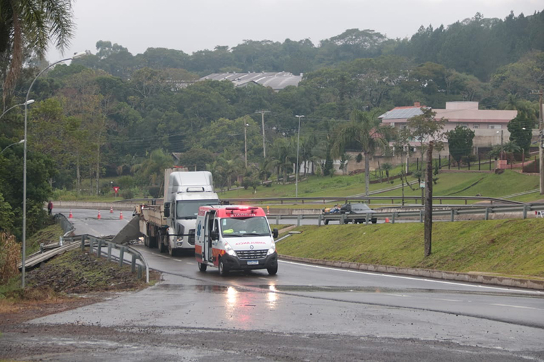Quem quiser entrar em Santa Cruz do Sul pelo Acesso Grasel terá como opção o retorno, logo após o viaduto, no quilômetro 100. O serviço de atendimento de saúde da concessionária Rota de Santa Maria e o policiamento rodoviário estadual estão no local, mas não há informações de feridos.