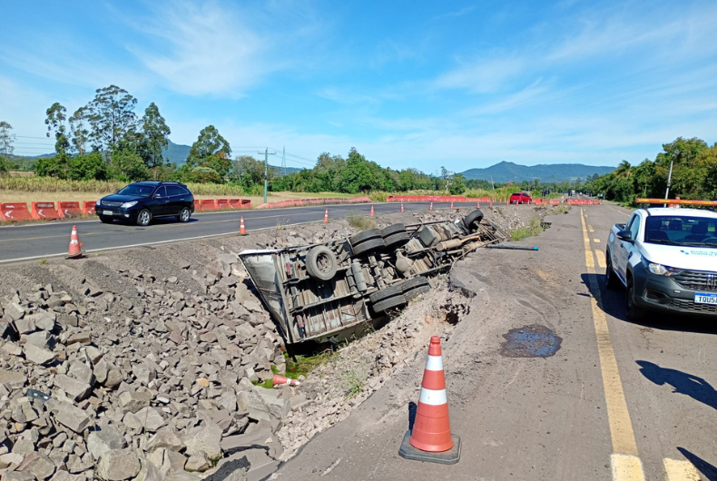 Dentro do caminhão havia dois ocupantes, ambos naturais de Vacaria. Eles foram socorridos Rota de Santa Maria para atendimento no Hospital Candelária, mas passam bem e não sofreram ferimentos. A concessionária mantém o isolamento do local para fazer a remoção do veículo tombado. O trânsito segue fluindo normalmente no desvio.