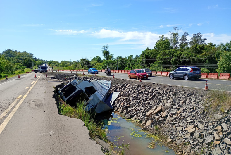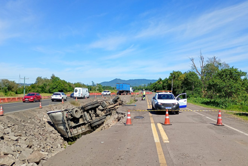 Um acidente de trânsito envolvendo um caminhão Volvo VM, com placas de Vacaria, foi registrado no fim da madrugada desta quinta-feira, 23, no quilômetro 135 da RSC-287, em Candelária, próximo à entrada da localidade de Linha do Rio. Por volta das 5 horas, o veículo teria tombado em uma valeta enquanto trafegava por um desvio, existente no local em virtude dos danos causados à pista principal nas enchentes do ano passado.