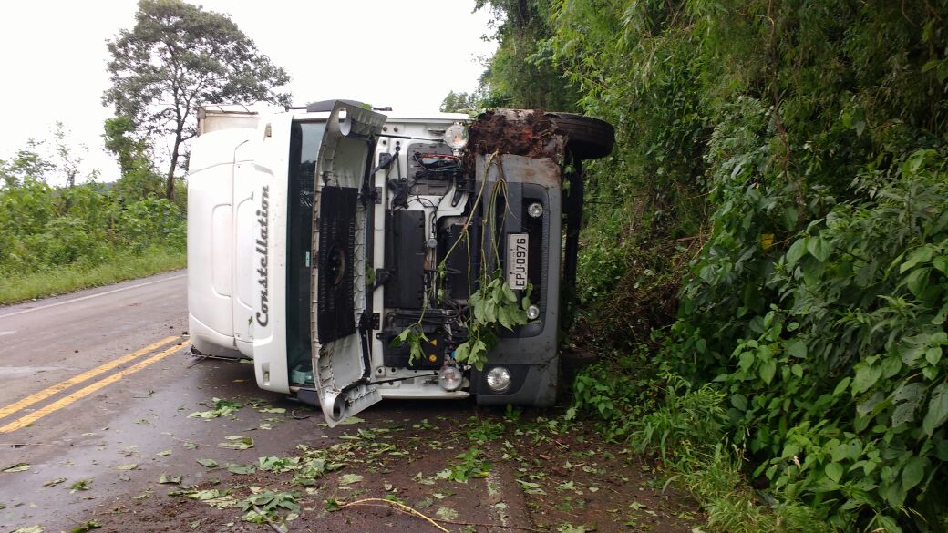 Um caminhão tombou na manhã desta quinta-feira, 19. O condutor seguia na direção de Sobradinho para Candelária, pela ERS-400, quando sofreu o acidente por volta das 11h15. Duas pessoas estavam no veículo, que tem placas de Ribeirão Preto (SP).
