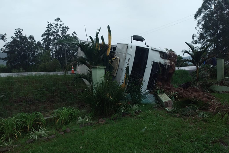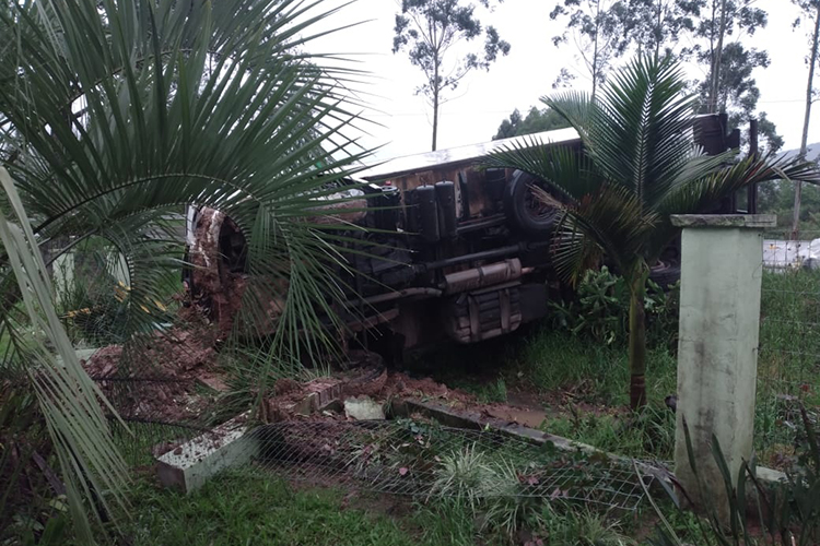 O veículo atingiu a cerca de uma casa, que fica à margem da rodovia. Ninguém ficou ferido na ocorrência e o caminhão ficou fora da via, sem prejudicar o trânsito. A remoção ocorre no início da noite desta quarta.