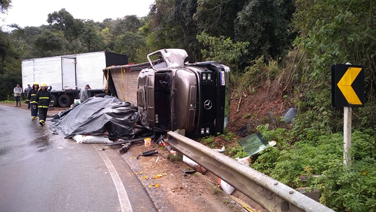 Um caminhão com placas de Parobé, carregado com sal mineral, tombou no começo da manhã desta sexta-feira, 6. O acidente ocorreu no quilômetro 14, da ERS-400, em Candelária, no trecho conhecido como Curva das Cobras. O veículo seguia no sentido Sobradinho/Candelária. Ninguém ficou ferido e o trânsito não chegou a ficar bloqueado.