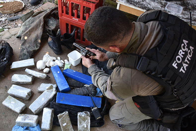 Nos recipientes foram apreendidos 15 tijolos de maconha, que totalizaram 9,2 quilos; três porções grandes de cocaína e outras 71 menores da mesma droga, que, somadas, chegaram a 648,6 gramas, além de 24 comprimidos de ecstasy, que totalizaram 16 gramas. Mais evidências sobre a ação do grupo criminoso foram localizadas em uma residência abandonada junto à sanga. Embora simples, de tijolo à vista, a casa apresentava um moderno sistema de videomonitoramento, que também foi apreendido pela BM.