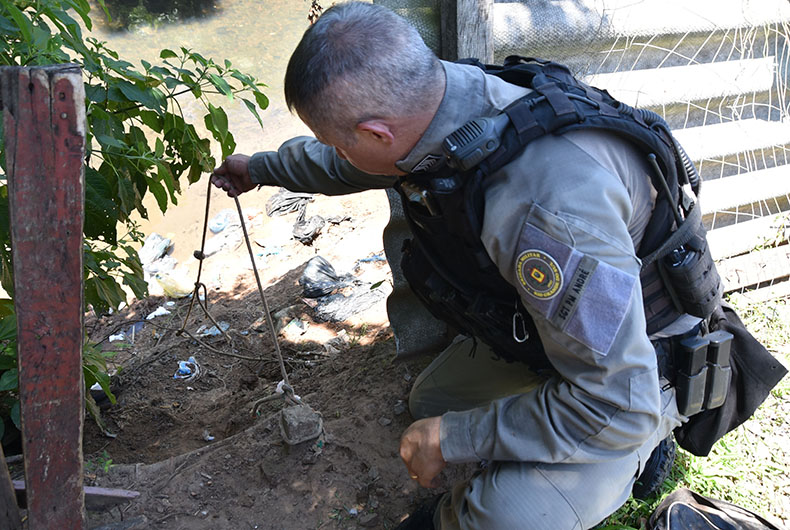 A travessia para o outro lado da sanga fazia parte de um trajeto criado pela facção Os Manos que desembocava em um depósito. Os PMs da divisão de elite do 23º Batalhão de Polícia Militar (23º BPM) seguiram a suspeita e encontraram enterrados, aos fundos na área de mata, tonéis que guardavam uma grande quantidade de drogas da organização criminosa.