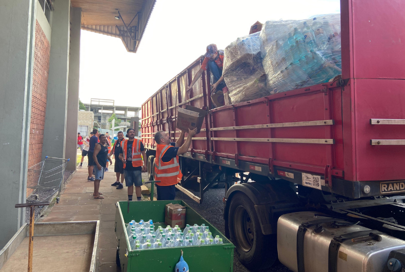 O ginásio da Universidade de Santa Cruz do Sul (Unisc) se tornou um grande ponto de coleta de doações, a exemplo de tantos outros espalhados pela cidade. Na manhã dessa quarta-feira, 8, quem passou pelas imediações da instituição se surpreendeu com a movimentação de carretas carregadas com donativos. Elas chegaram de municípios do Paraná contendo toneladas de alimentos, água e outros itens que foram usados na montagem de cestas básicas.