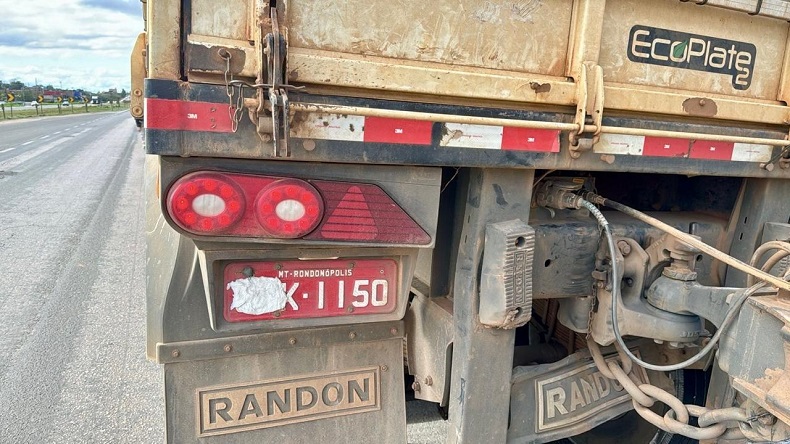 Na tarde desse sábado, 24, a Polícia Rodoviária Federal (PRF) prendeu um caminhoneiro por adulteração do sinal identificador de veículo automotor. A abordagem ocorreu na BR-116, quando a carreta que ele dirigia foi apreendida devido ao veículo estar transitando com as placas cobertas de maneira improvisada: a placa da frente com uma cueca e as de trás com papel higiênico molhado.