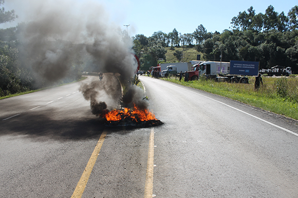 Houve queima de pneus, chamando a atenção de quem trafegava pela rodovia. Conforme um dos integrantes da associação, Leandro Rech, caminhoneiros foram convidados a parar por algumas horas. Em alguns casos, a adesão ocorreu voluntariamente, incluindo de representantes de outras categorias.