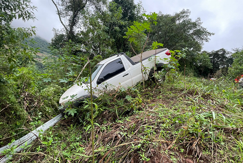 Caminhonete saiu da pista | Foto: Divulgação / Bombeiros Voluntários