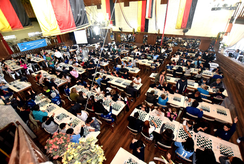 O campeonato de xadrez das Olimpíadas Escolares de Santa Cruz do Sul (Oescs) foi atração nesta quarta-feira, 4, no espaço Bierhaus, dentro do Parque da Oktoberfest. De acordo com o responsável técnico, Paulo Rocha, a competição contou com 320 participantes de diversas escolas da rede pública.