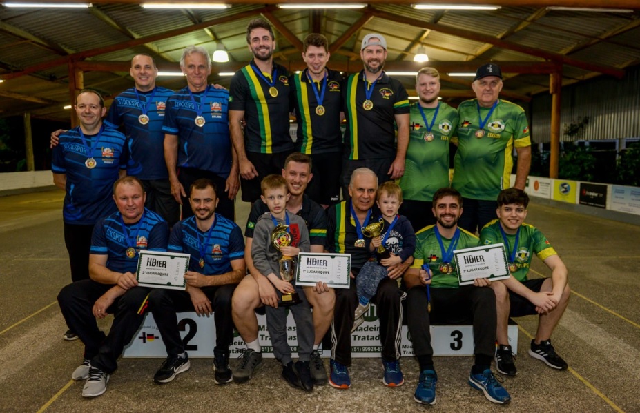 No masculino por equipes, o grupo campeão foi o Innsbruck, do CC 25 de Julho, que superou ao Bierkrieger, do Alt Pikade, na final, pelo placar de 15 a 3. A equipe campeã formou com Eduardo Schuster, Sérgio Böhm, Luís Eduardo Kauffmann, Júlio Reis e Samuel Böhm. Em terceiro lugar ficou o Amstetten e em quarto, o Bayer, ambos do CC 25 de Julho.