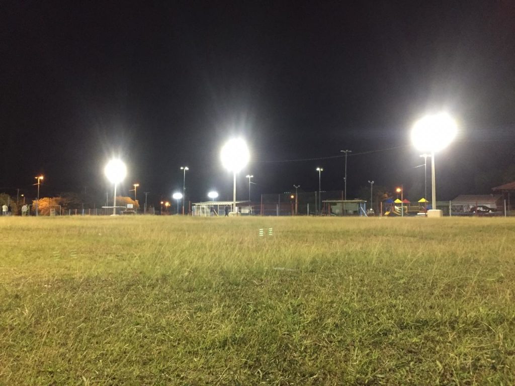 A iluminação do complexo esportivo já está pronta. As seis torres instaladas no entorno da área dispõem de 48 lâmpadas de LED, totalizando 9.600 watts de potência. O serviço foi realizado pela Secretaria de Transportes, Serviços e Mobilidade Urbana. Conforme a secretária da pasta, Diani Sopelsa, as torres que já existiam, na área dos banheiros e nas laterais do campo, também receberão lâmpadas de LED. “Faremos a substituição para que o local fique seguro e adequado para possibilitar a prática de esportes à noite”, afirmou. A previsão é de que a arena de esportes esteja pronta para ser utilizada no segundo semestre deste ano.