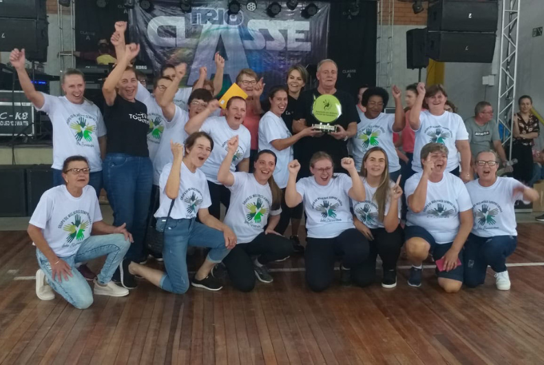 As vitoriosas foram do Grupo de Mulheres Sempre Unidas, de Linha Bernardino. Com dez anos, é a primeira vez que elas conquistam o primeiro lugar, o que rendeu troféu e R$ 500,00. A presidente Cléia Ellwanger adiantou que a ideia será reunir o grupo em uma confraternização. “A gente não chegou a fazer nenhum tipo de preparação. Reunimos as amigas e viemos”, afirmou, ainda eufórica com o título.