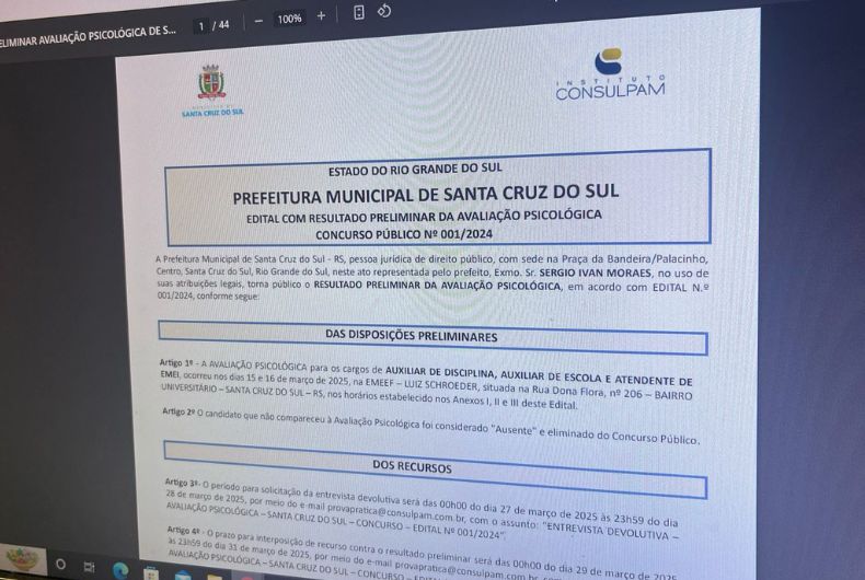 Candidatos que realizaram o concurso da educação da Prefeitura de Santa Cruz do Sul buscam soluções para que o resultado seja revisado e homologado pela empresa responsável, a Consulpam. Segundo eles, houve erros na hora da divulgação dos nomes que avançaram da primeira fase, e agora, novamente, com o resultado da avaliação psicológica.