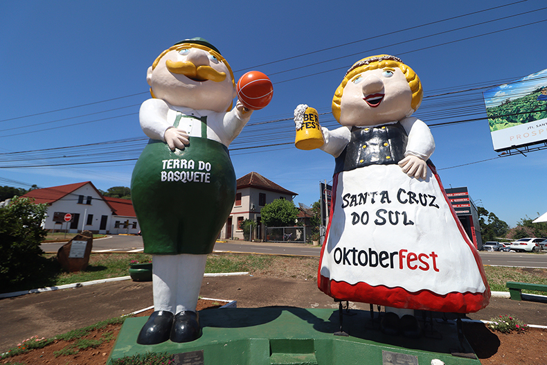 Na manhã desta quarta-feira, 8, o copo do chope na mão do personagem-símbolo da Oktoberfest, o Fritz, foi substituído por uma bola de basquete. Assim, as duas paixões da população local estariam representadas no principal acesso à região central.